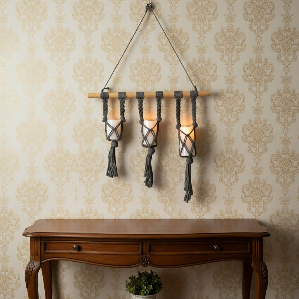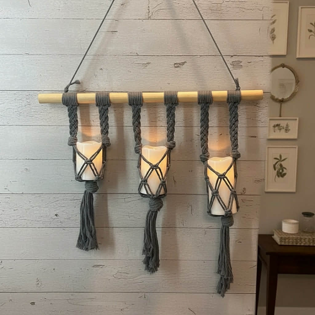 Wrap yourself in boho vibes 🌿✨ This handwoven macramé LED candle holder brings earthy warmth and laid-back magic to any space. With three remote-controlled flickering candles, create your perfect ambiance for yoga nights, cozy reading corners, or chill vibes 💫 Batteries not included